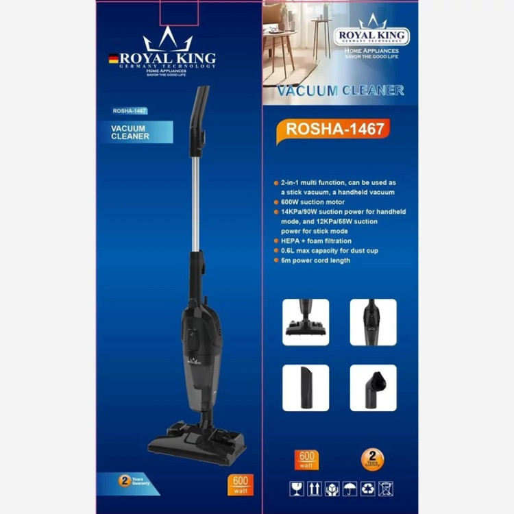 جارو پرتابل برند رویال کینگ آلمان دارای مخزن آب جهت طی کشیدن قدرت 600 وات قابلیت کوتاه و بلند شدن دارای پنج متر سیم